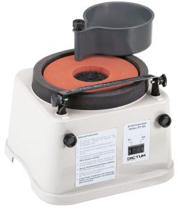 For the required heavy material removal, use a stone with coarse grit 220 or 400, a coarse diamond sharpening block or a wet sharpener e.g. Tormek T-8 (No. 716034) or Shinko (No. 716020).